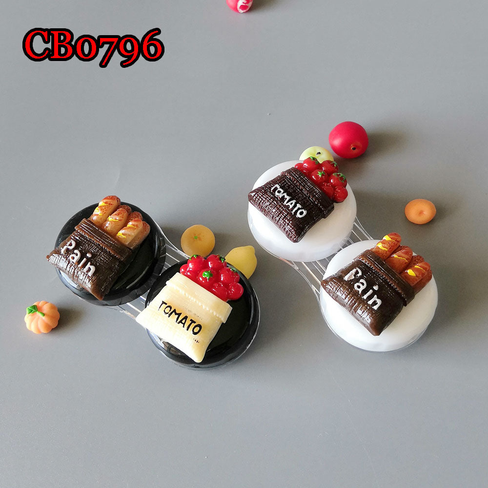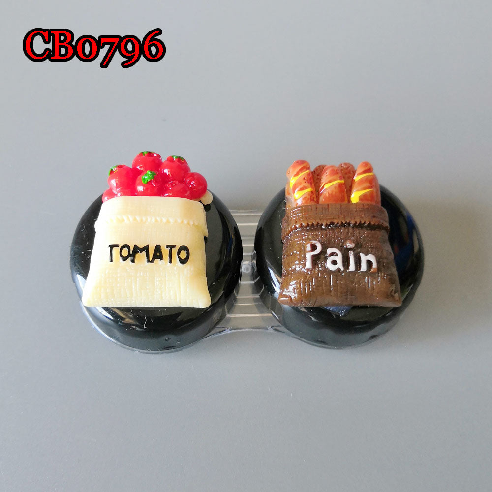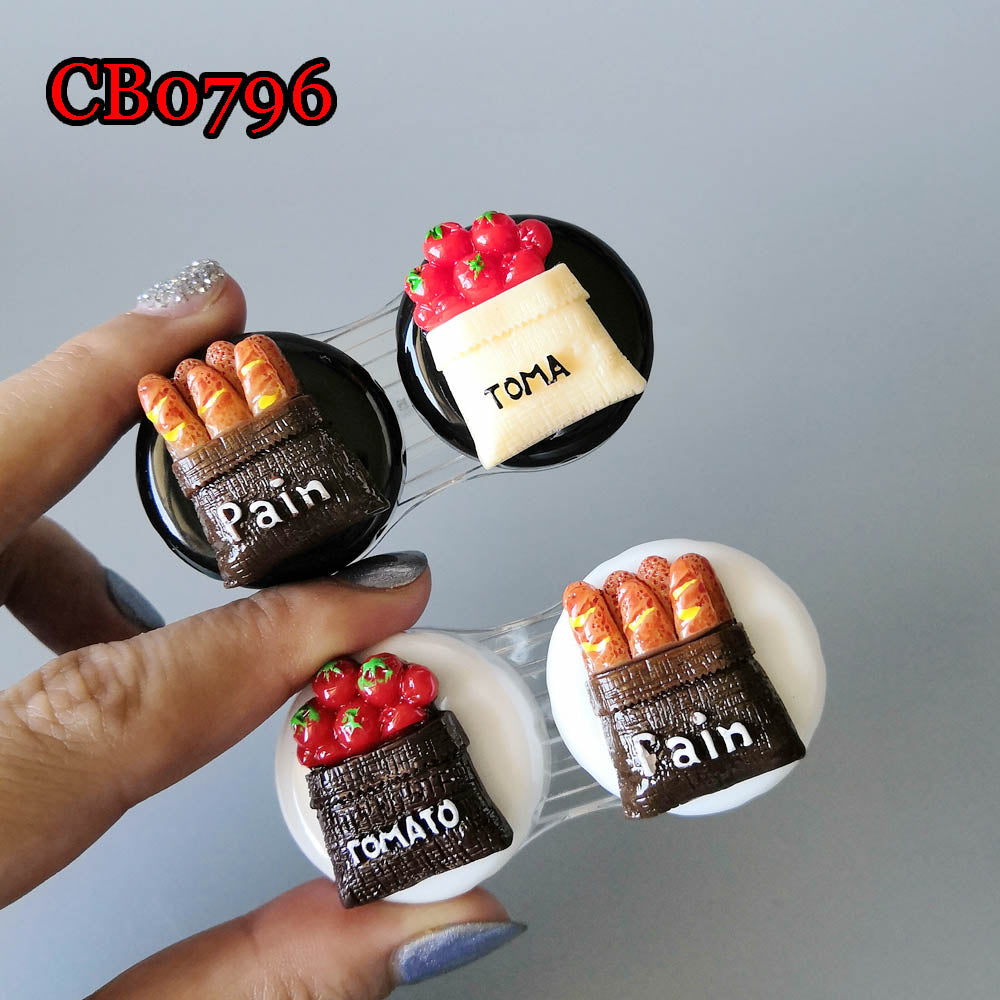 מחסנית לאחסון עדשות מגע בעיצוב לחם ועגבניות