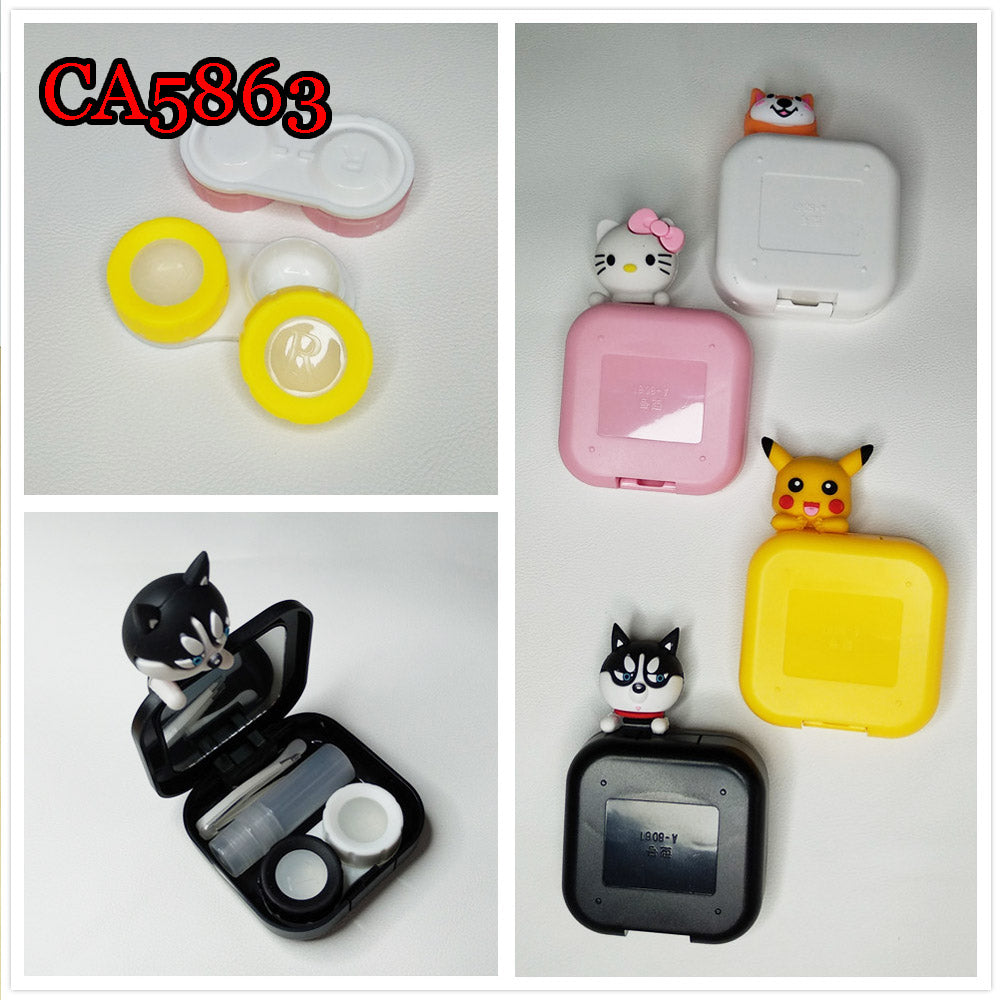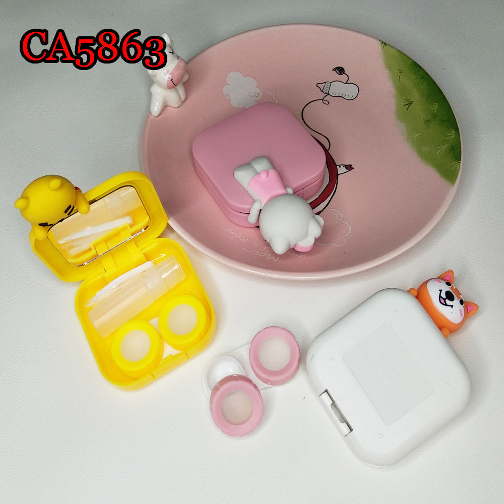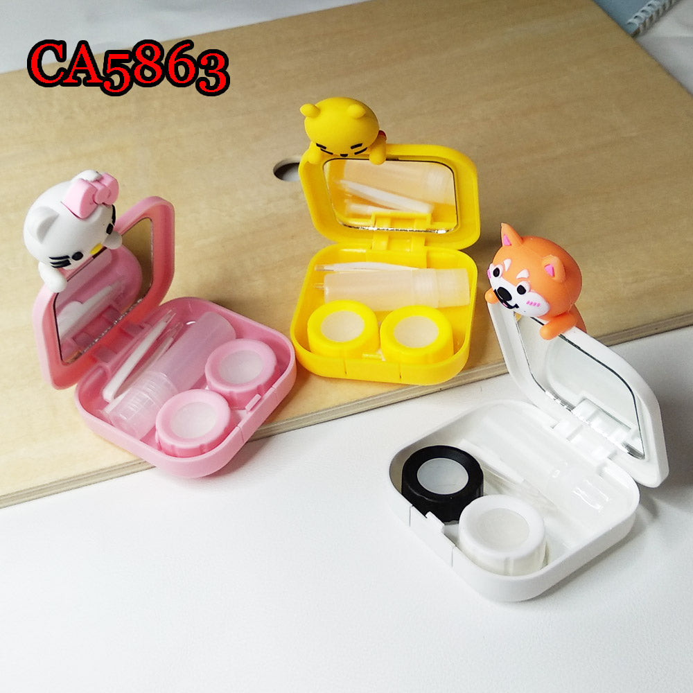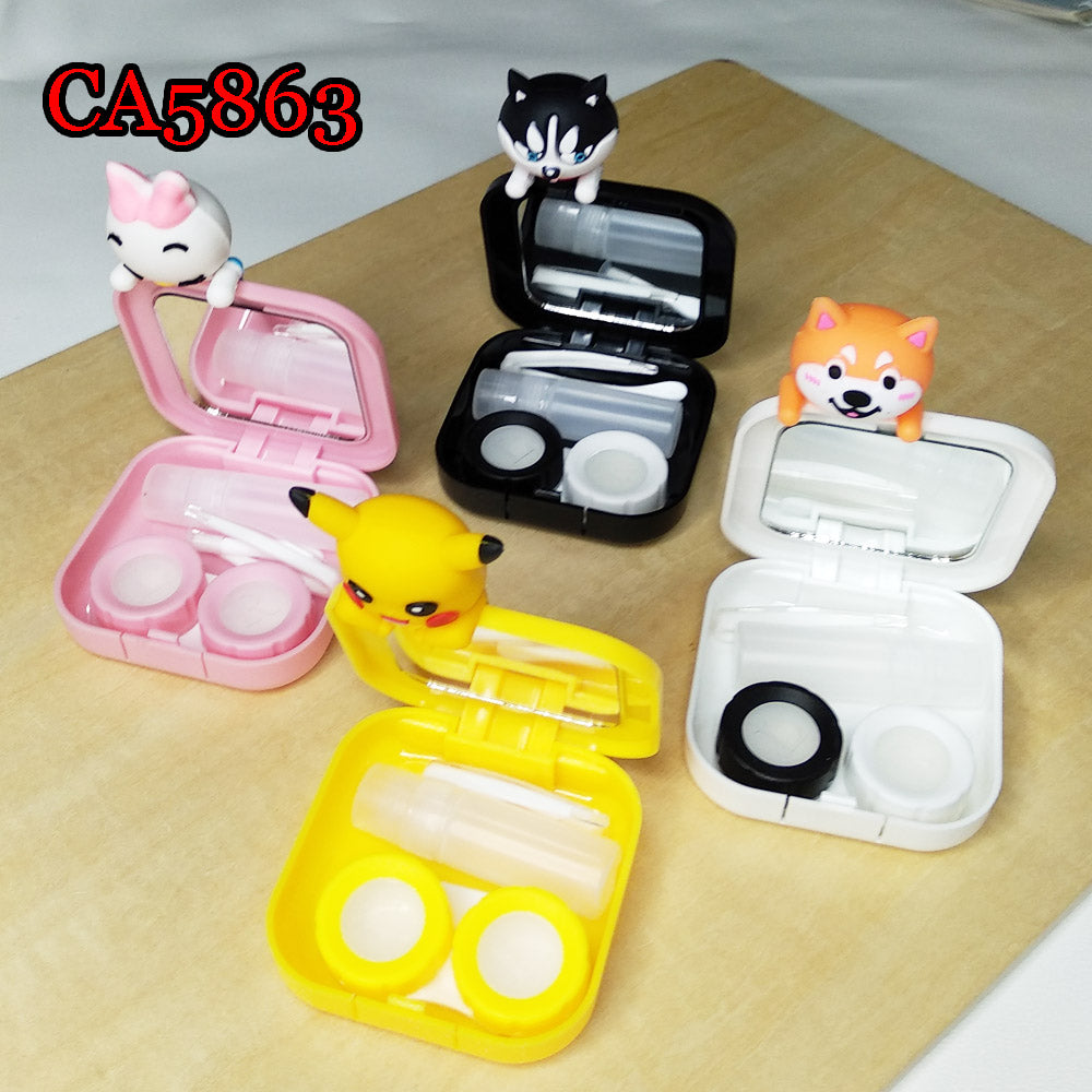 סט אלגנטי בעיצוב דמויות מצויירות לאחסון עדשות מגע + ציוד לטיפול בעדשות